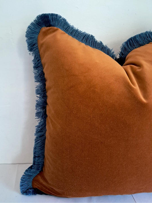 Rust Velvet Throw Pillow - Copper Velvet Fringe Cushion - Brown Velvet Pillow