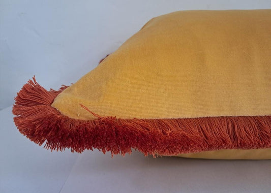 Mustard Velvet Cushion - Mustard Fringe Velvet Pillow