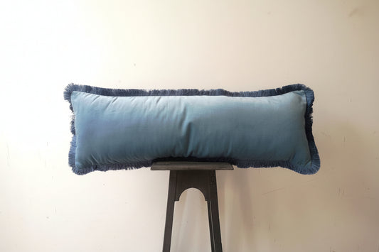 Long Lumbar Velvet Pillow - Blue Velvet Lumbar Cushion - Extra Long Pillow